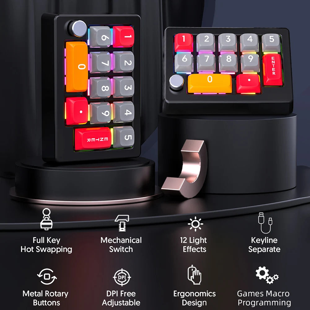13 Key Macro Programmable Fully Hot Swappable Mechanical Switch 12 RGB Lighting Effects Gaming Mini Keyboard