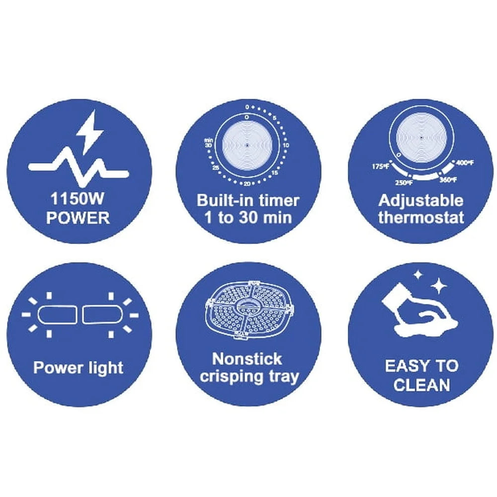 2 Qt Compact Air Fryer 1150W has a nonstick pan and tray. It also has adjustable temperature control, a timer, and auto shutoff. These features make cooking easy. The basket and tray are removable and dishwasher safe, so cleaning is simple. The temperature range is 175°F to 400°F. This means you can cook healthy, crispy food with minimal oil. This air fryer is perfect for small kitchens, dorm rooms, and other limited spaces.