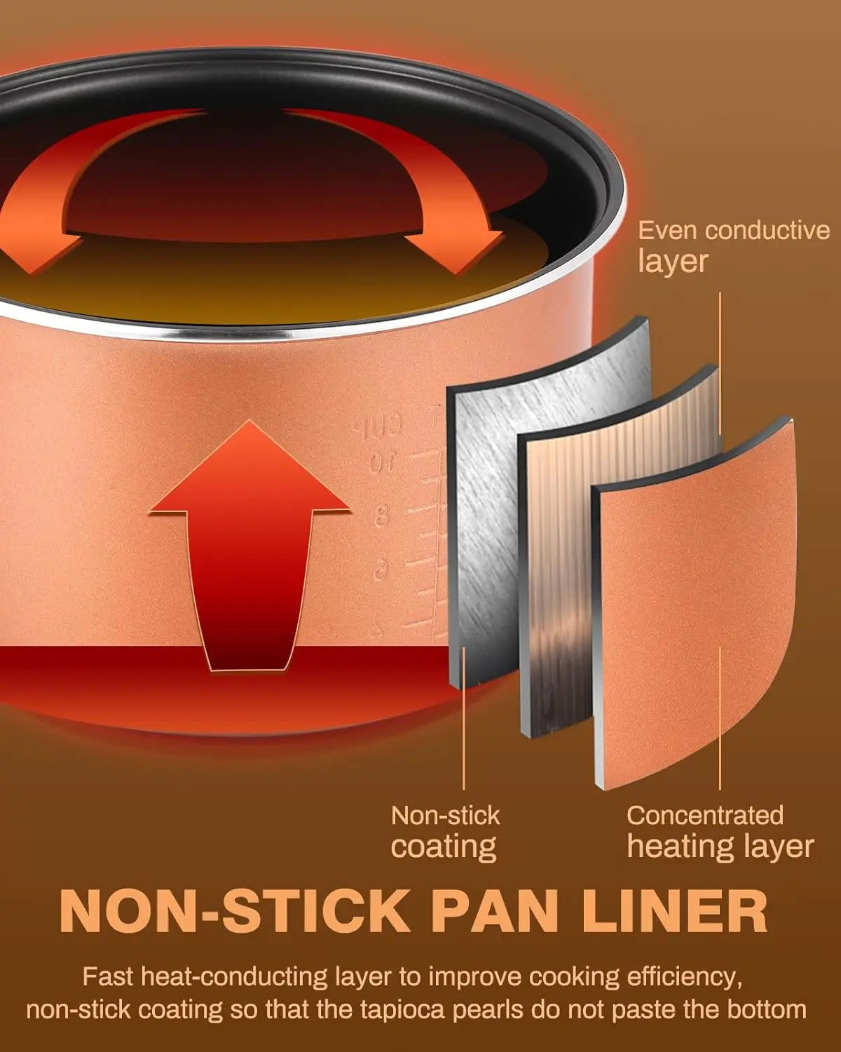 3. Even Heat Distribution Base: The specially designed heating base guarantees an even distribution of heat across the entire cooking surface, which is crucial for cooking tapioca pearls to perfection. This feature helps ensure that the boba pearls are cooked evenly, resulting in a chewy texture that customers love