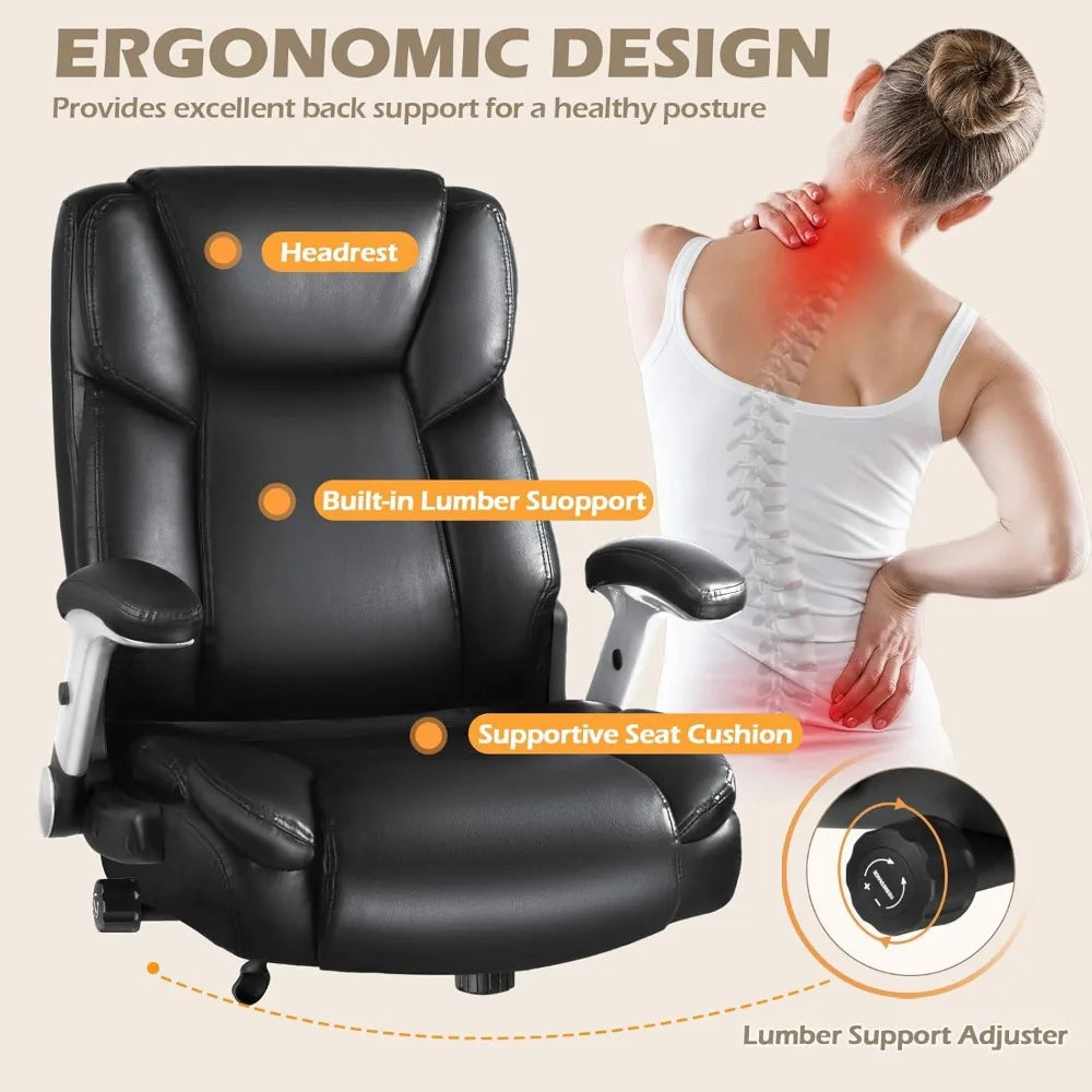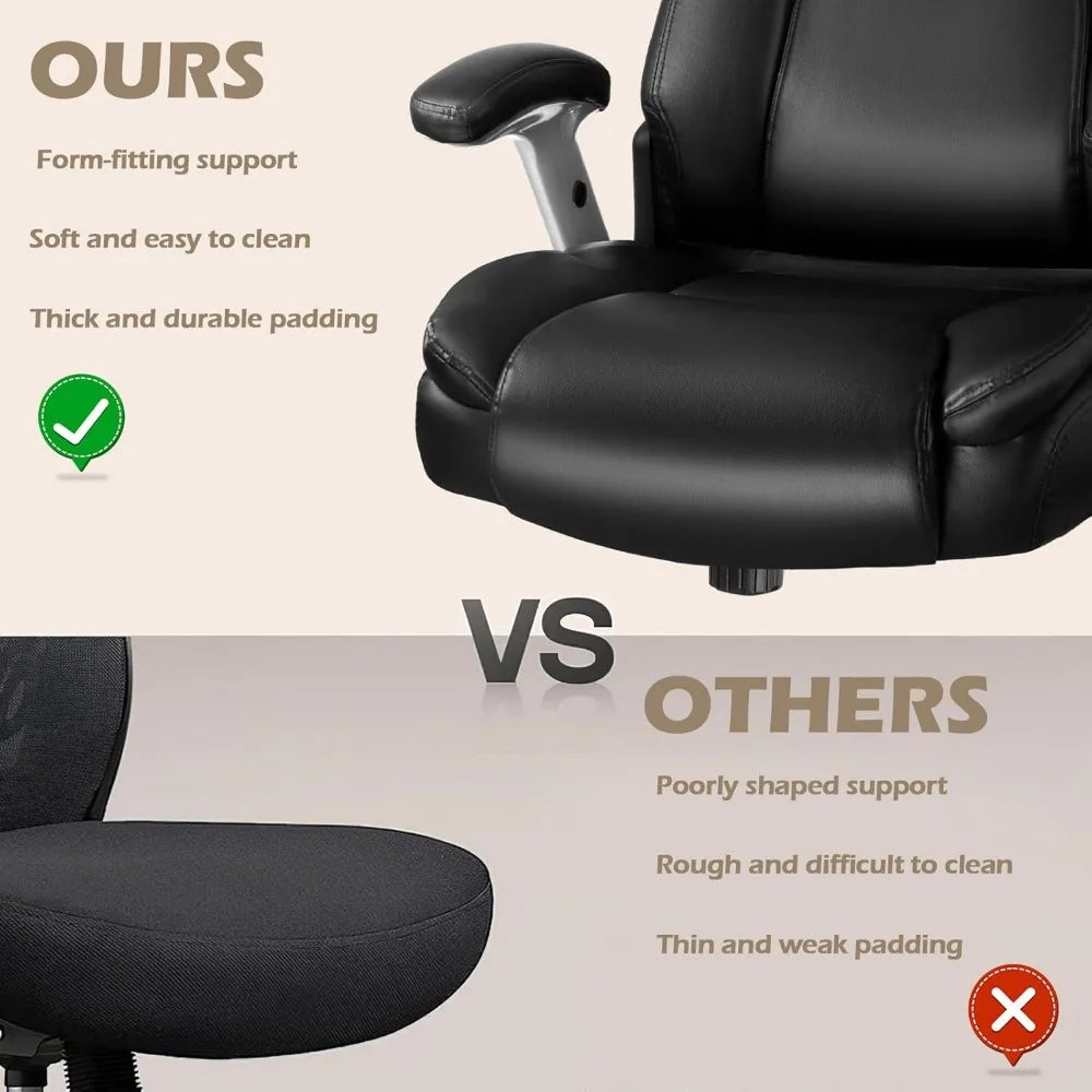 600 lbs Big and Tall Office Chair, Ergonomic PU Leather Executive Comfy Desk Chair with Back Support, Heavy Duty Extra Wide Sea