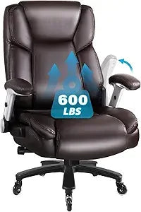 - 600LBS BIG AND TALL OFFICE CHAIR: Made of soft and comfortable PU leather and high elastic sponge cushion, excellent sitting sensation, and built-in lumbar support and a padded seat with thick and soft memory foam cushioning. All the characteristics make its a perfect executive office chair for big and tall adult. If you spend long hours at the desk and pursue comfort, support, and functionality, the 500lbs computer chair is exactly your choice