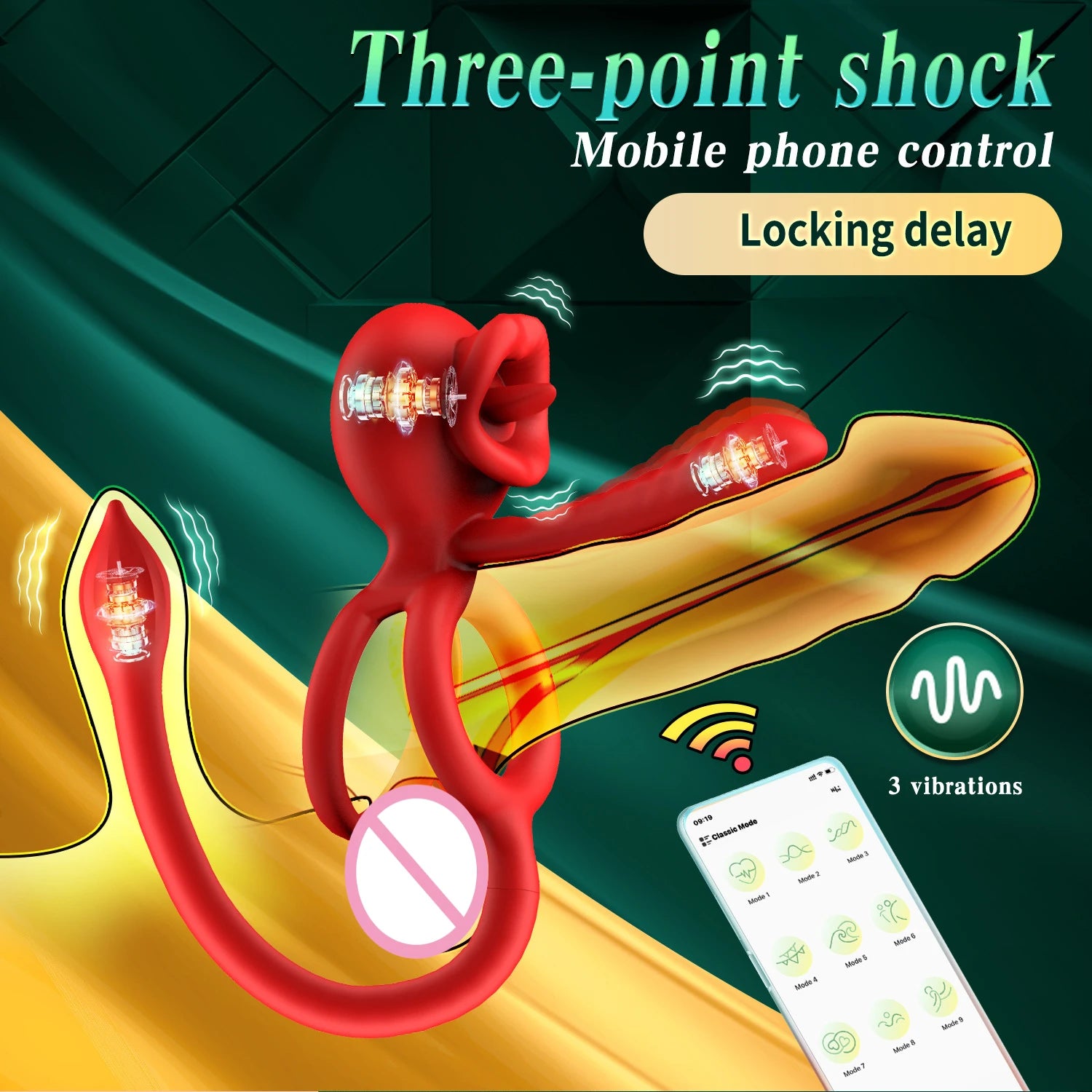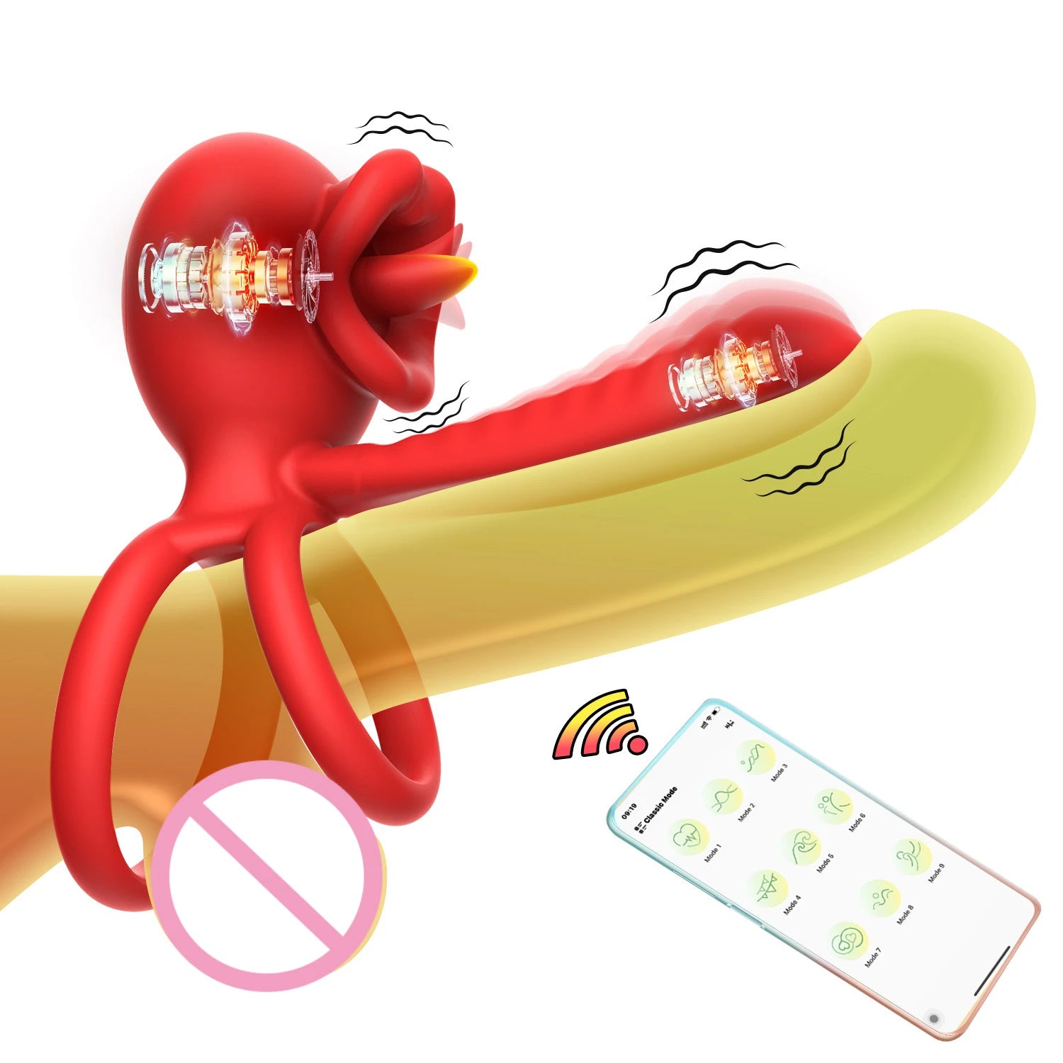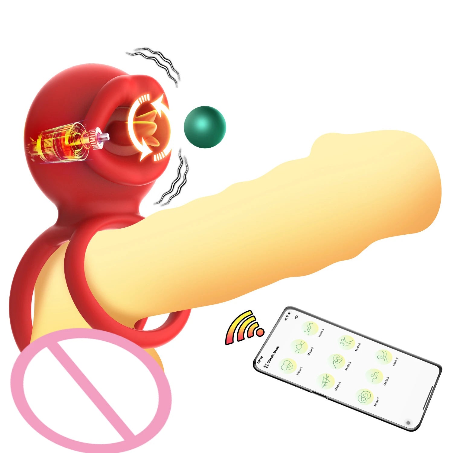 APP Vibrating Cock, Ring Sleeve Rose, Clitoral Vibrators, Tongue Clit Stimulator Anal Plug Prostate Massager Sex Toys for Men Women