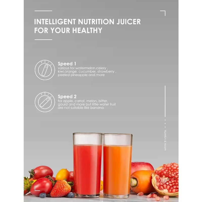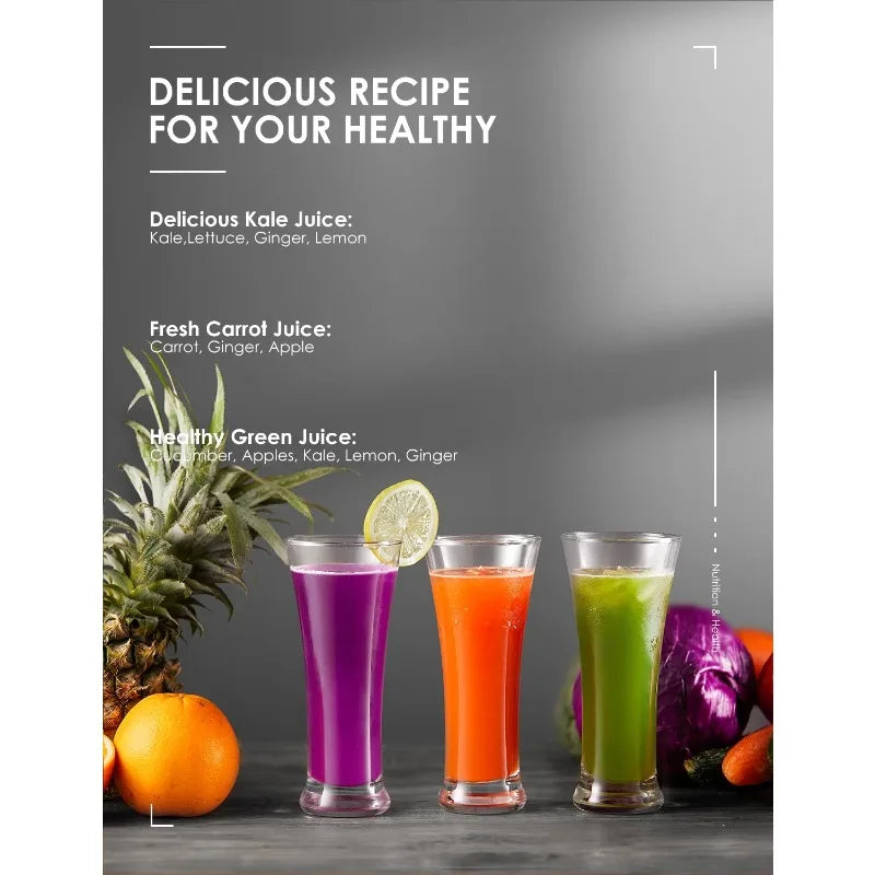【 】The Centrifugal Juicer adopts food-grade material, 304 stainless steel material, Anti-corrosion sharp blade, and precision filter, escort for your health; compared to other juicers, up to 35% of the juice and 45% of the vitamins and minerals can be extracted.
