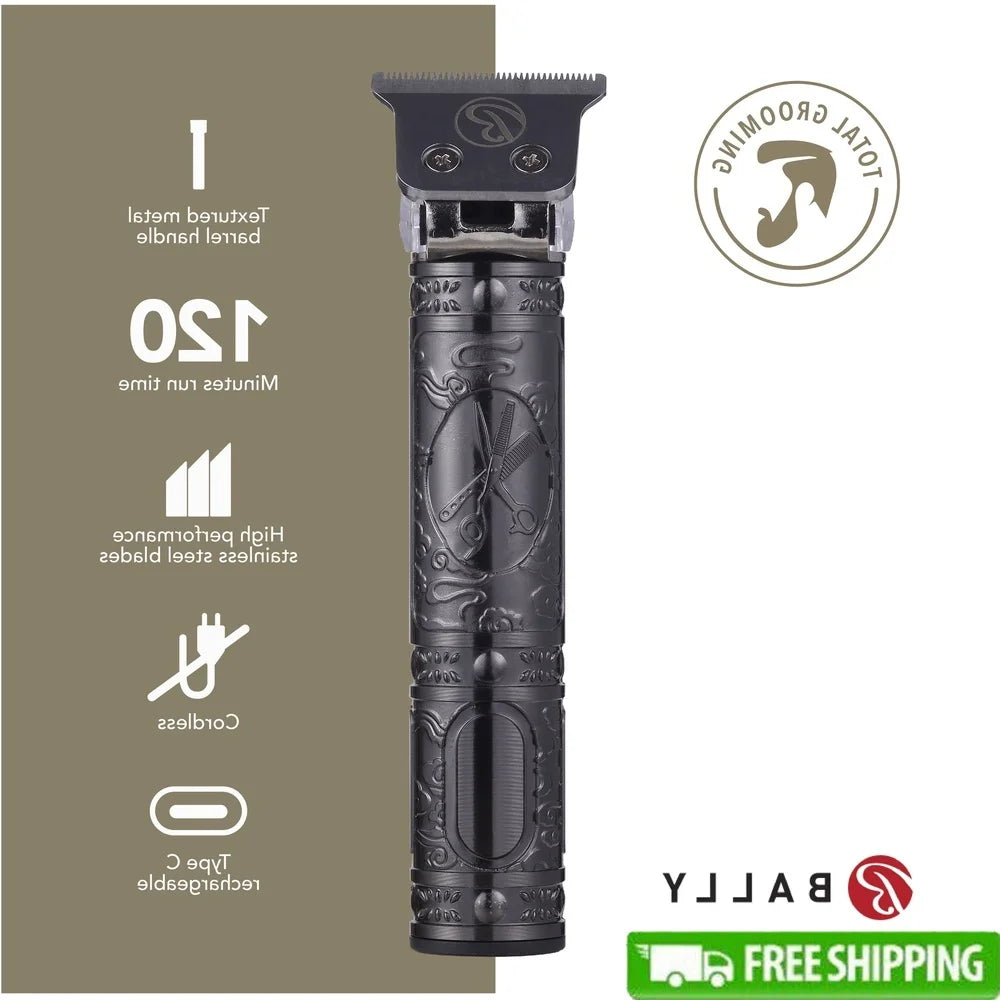 Cordless Rechargeable, Stainless Steel T-Blade Men's Hair Trimmer, Adjustable Comb Guides Professional Haircut LED Battery