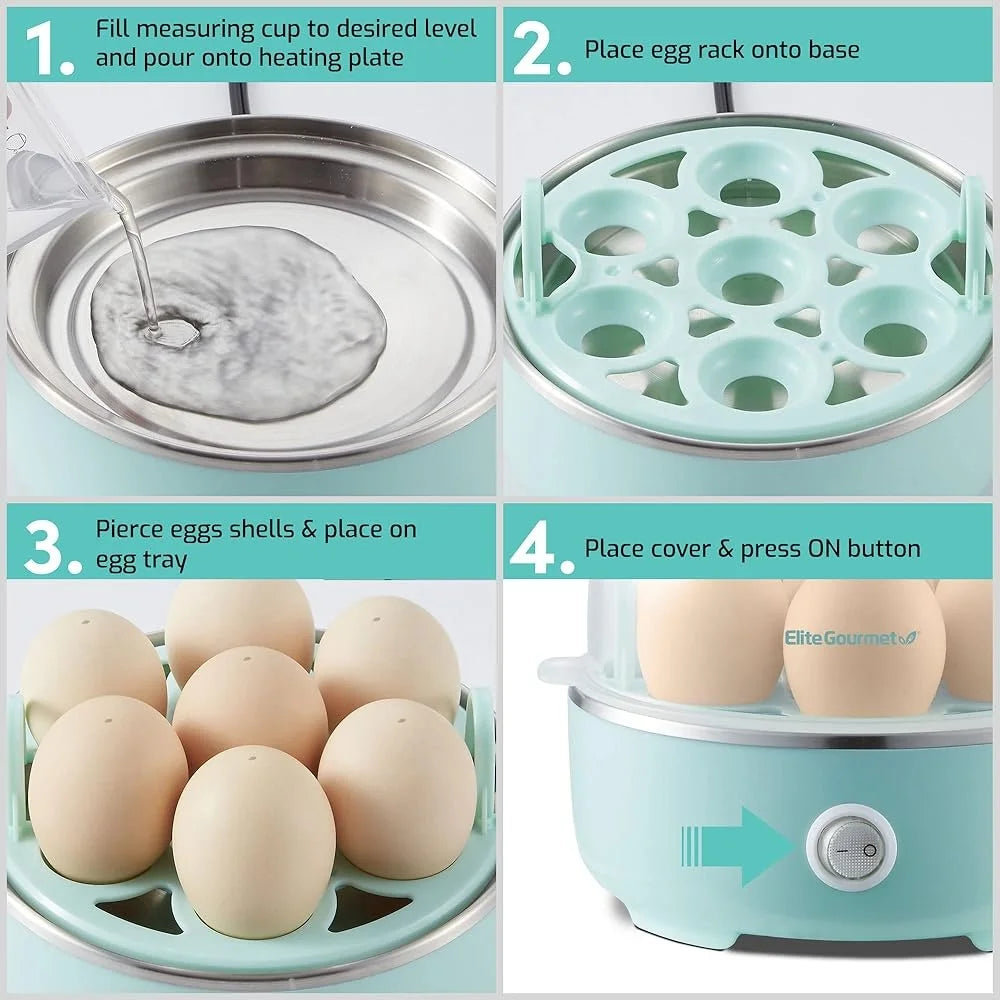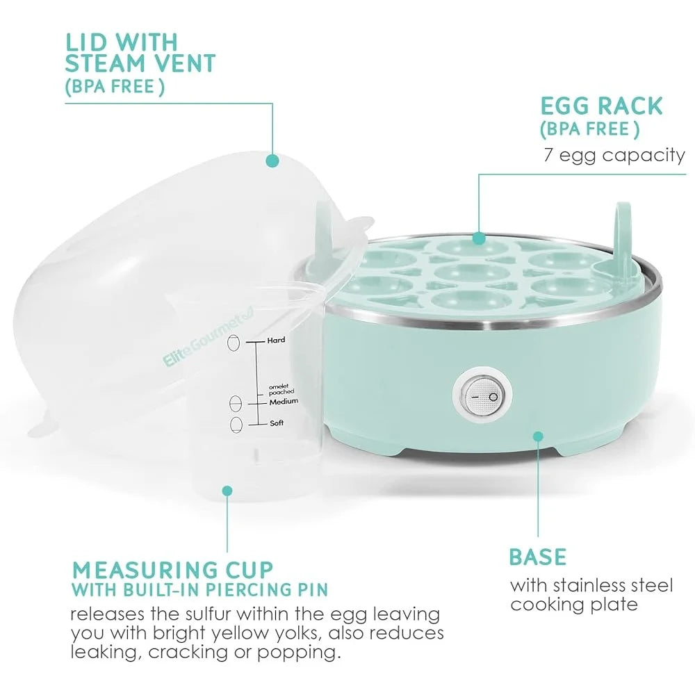 Electric Egg Cooker, 7-Egg Capacity, Auto Shut-Off, Soft Medium Hard Boiled, Easy Cleanup Compact Kitchen Appliance Measuring Cup