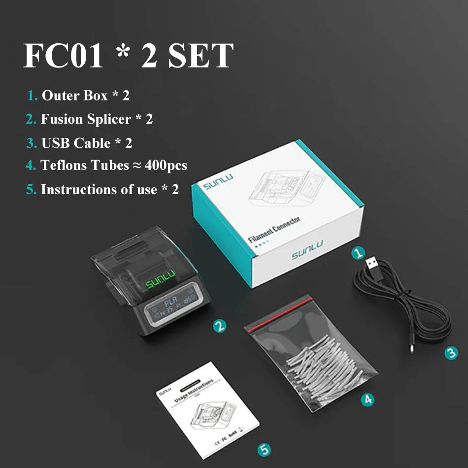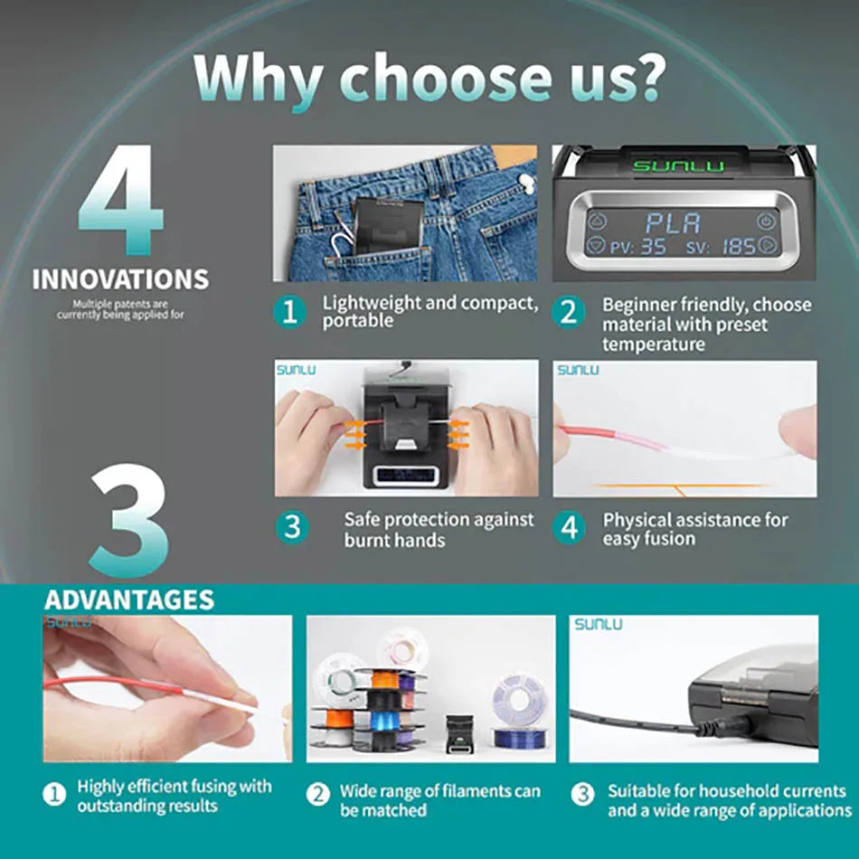 SUNLU Filament Connector FC01 fully utilize leftover 3D printing filament, minimizing waste and saving costs. The fusion splicer reduces tail material waste and helps users save on new consumables. Achieve efficient printing projects with zero waste.
