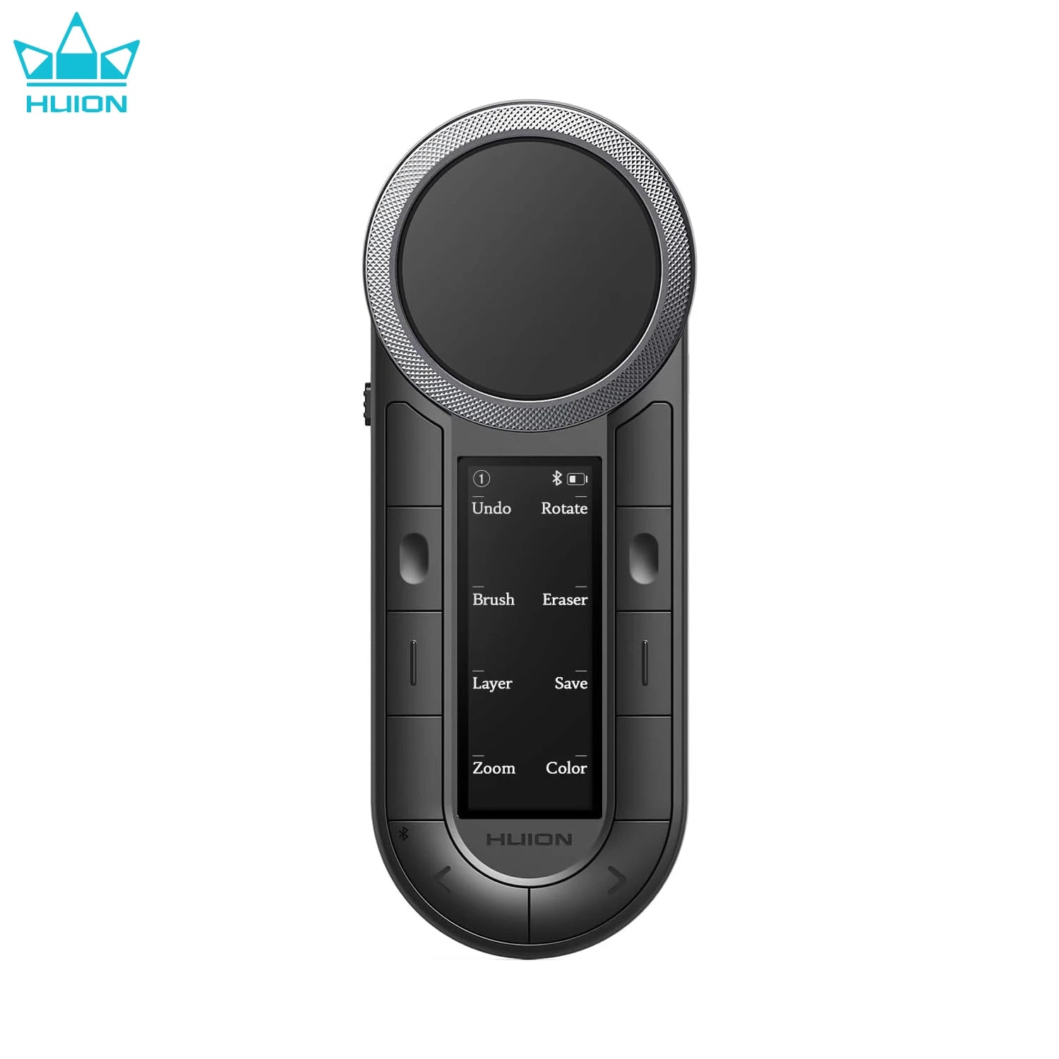 Huion Keydial Remote features a dual-dial controller and eight programmable keys. It can be connected to two devices via Bluetooth and supports customizing shortcuts. The ergonomic design offers a comfortable grip for immersive creation.