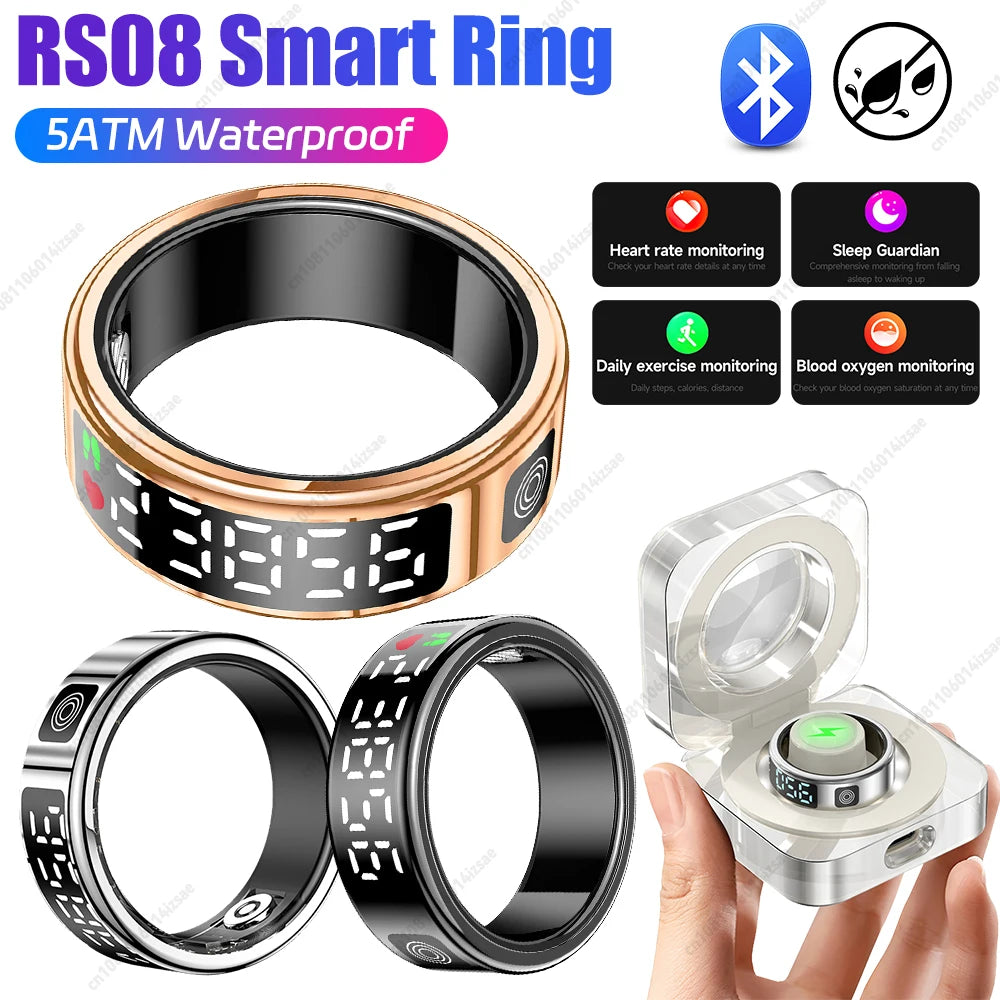 New RS08 Smart Ring 5ATM Waterproof Health Monitor Heart Rate Blood Oxygen Sleep Monitoring Sleep Ring for Men Women for Xiaomi