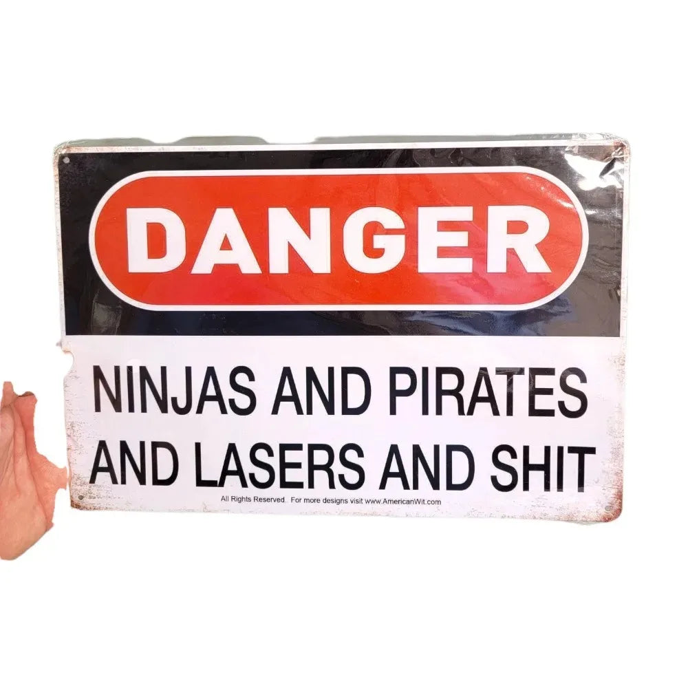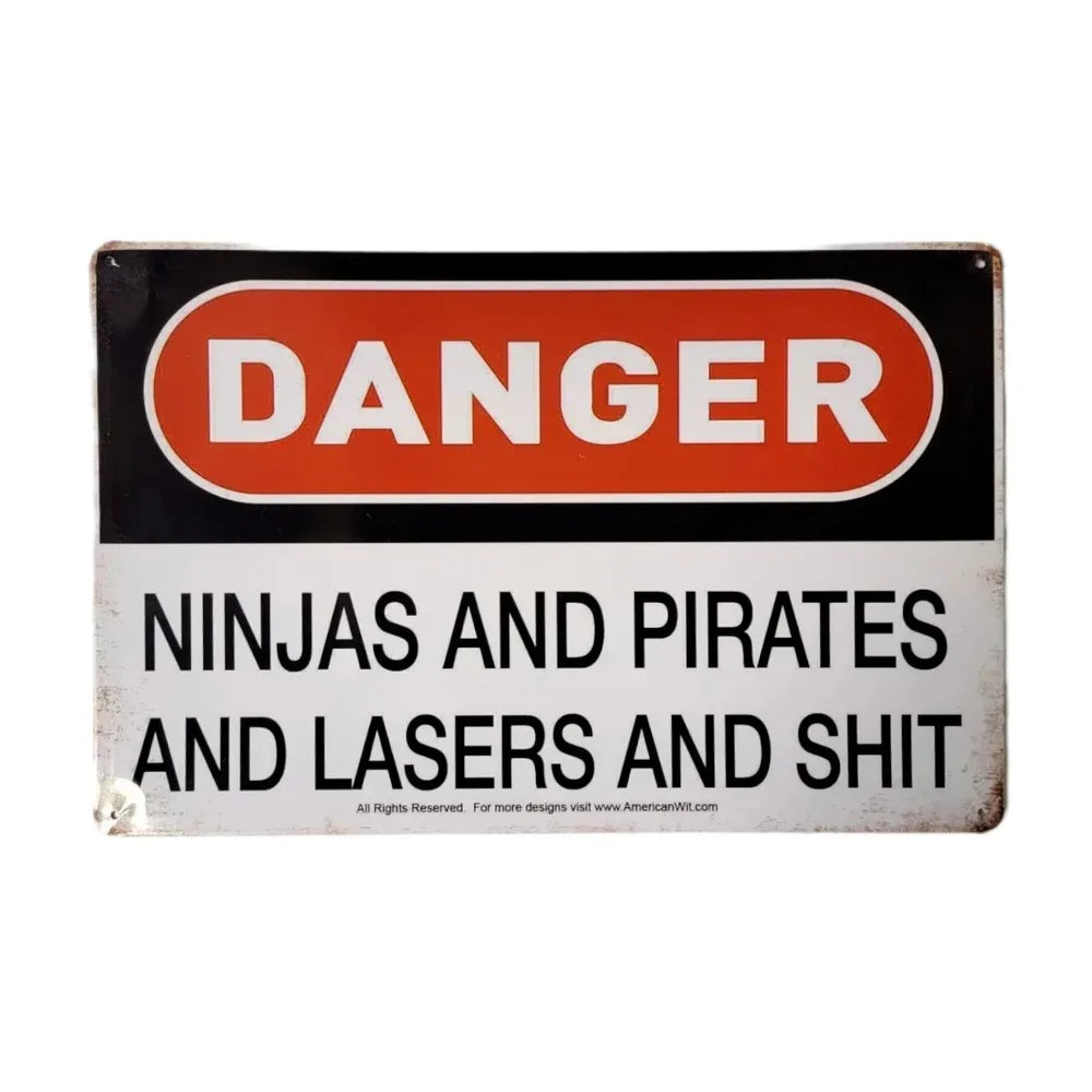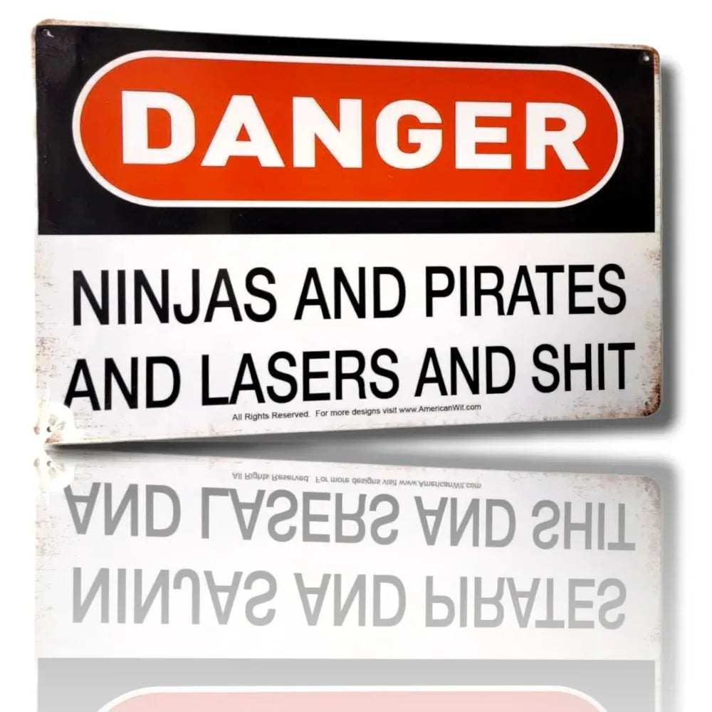 " Ninjas Pirates Lasers" Sign | Rustic Metal Art | Gaming Room Decor