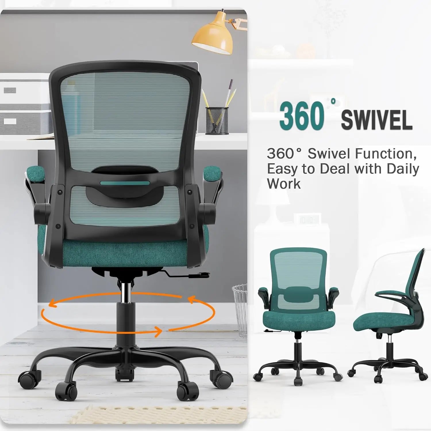 Office Chair, Ergonomic Desk Chair with Adjustable Lumbar Support, High Back Mesh Computer Chair with Flip-up Armrests