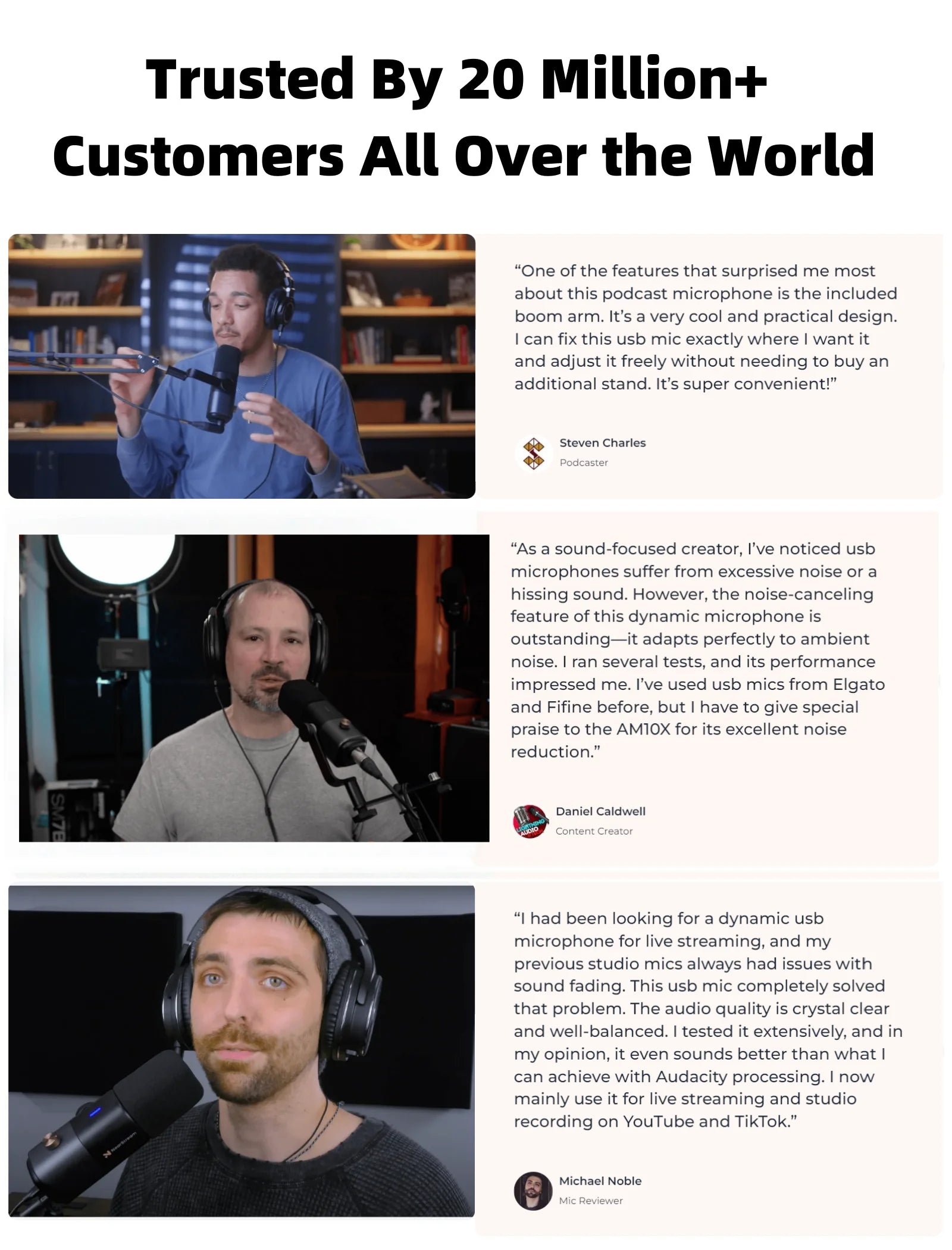 A6: You can use the AM15X usb mic for podcasting, streaming, gaming, music creation, online meetings, sound recording, studio recording, and more.