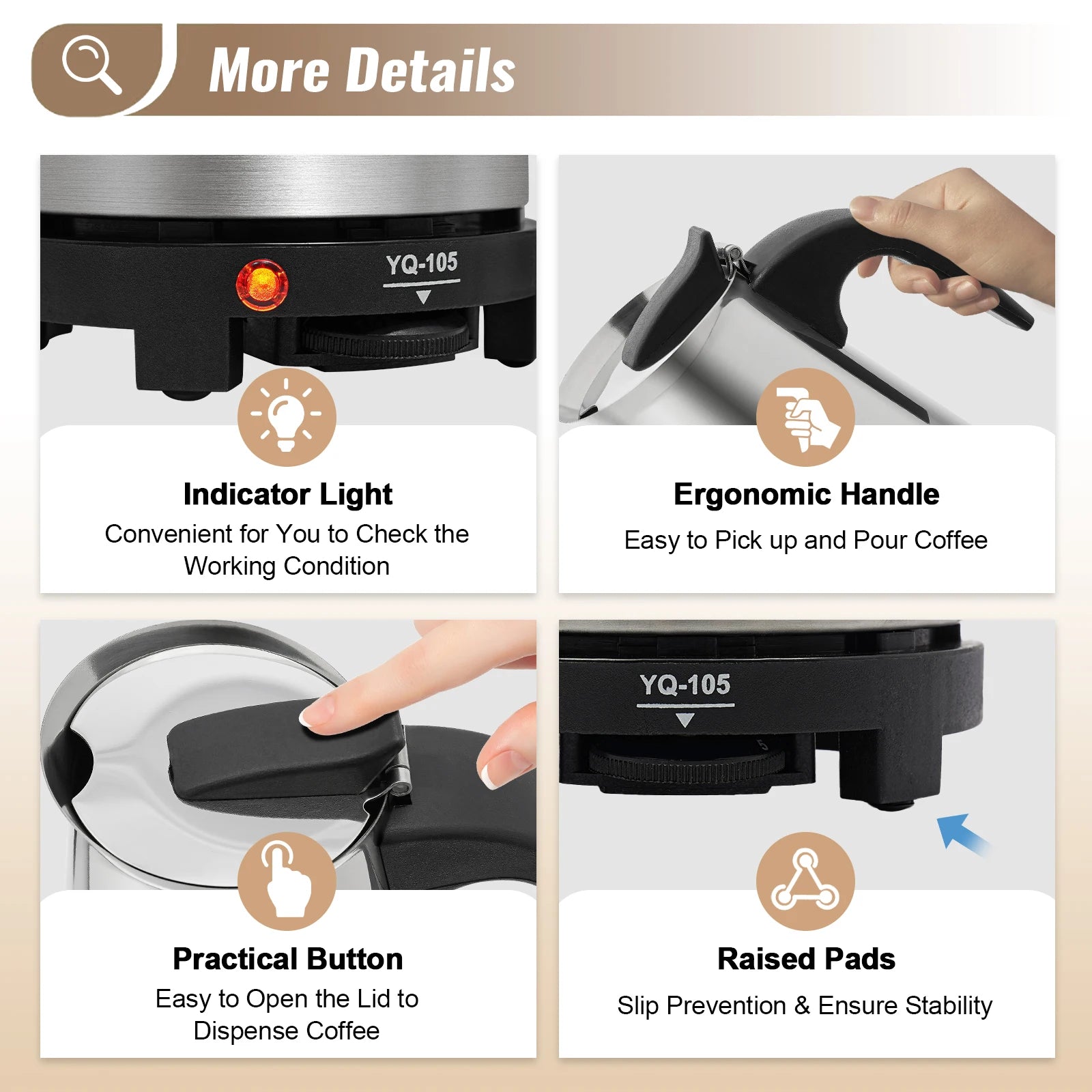 2. When using it, please ensure the temperature is not too high, otherwise, the coffee will splash out.