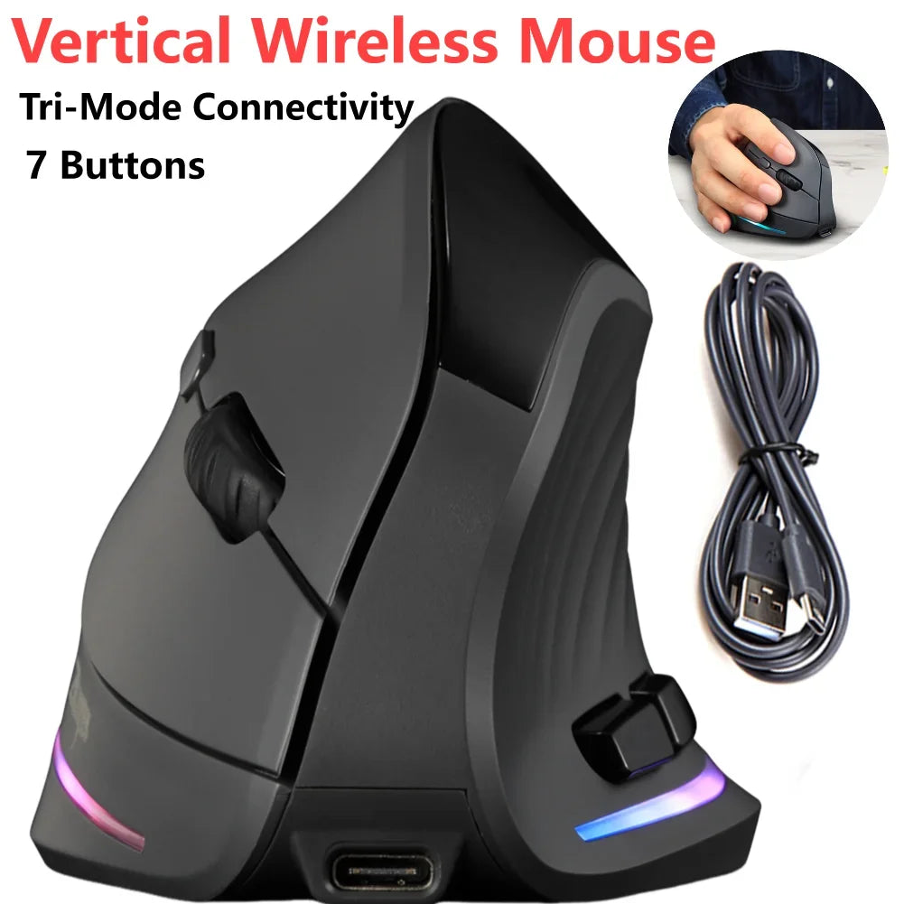 Wireless Vertical Mouse 7 Buttons Ergonomic Mouse Tri-Mode BT+2.4GHz+Wired Vertical Mouse For Laptop PC Computer Desktop